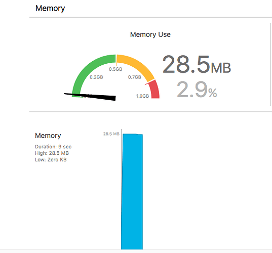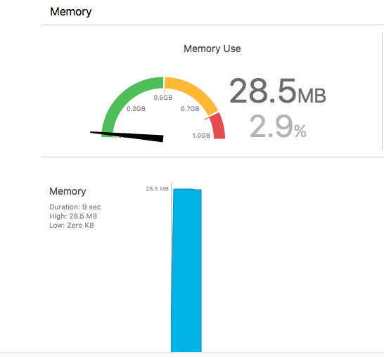 正常情况下,首次启动+载入贴图,内存28.5mb;