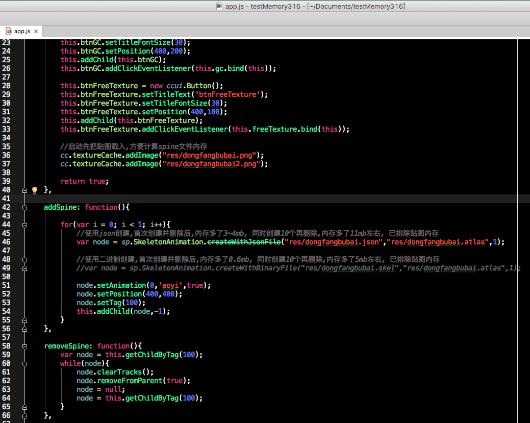 附上测试代码:cocos2djs_316_内存测试.zip (1.9 MB)