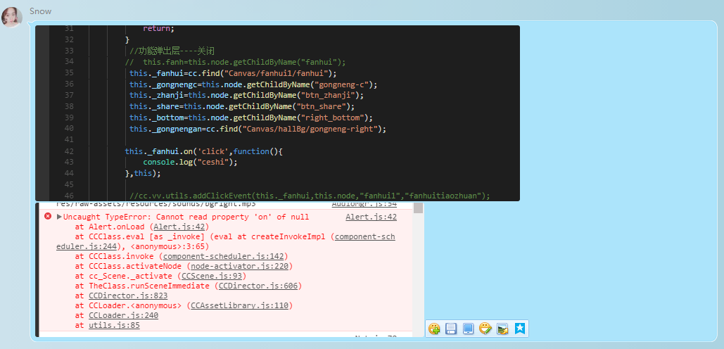目测没有找到Canvas/fanhui1/fanhui 这个节点