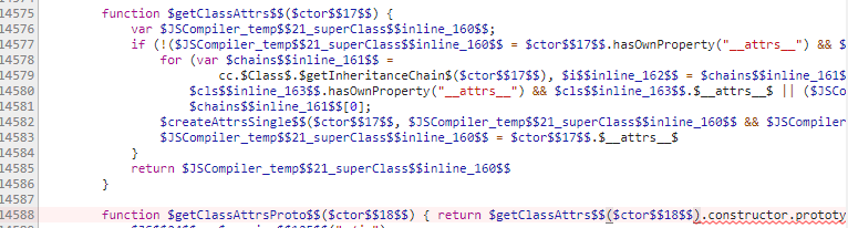 我们游戏是2D MMO,代码量在10W行以上,正常的project.js能达到4M以上,看上图的大小,你们能猜到实现方法吗?:)