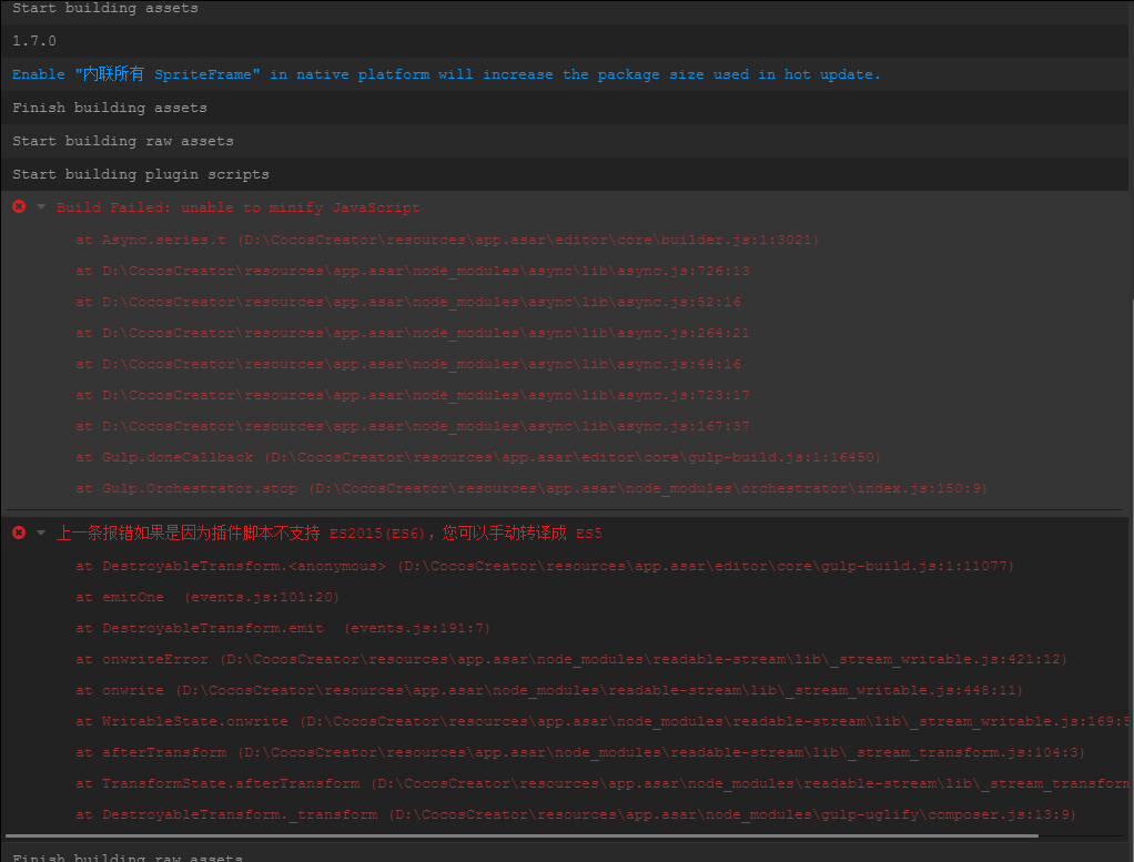 at DestroyableTransform._transform (D:\CocosCreator\resources\app.asar\node_modules\gulp-uglify\composer.js