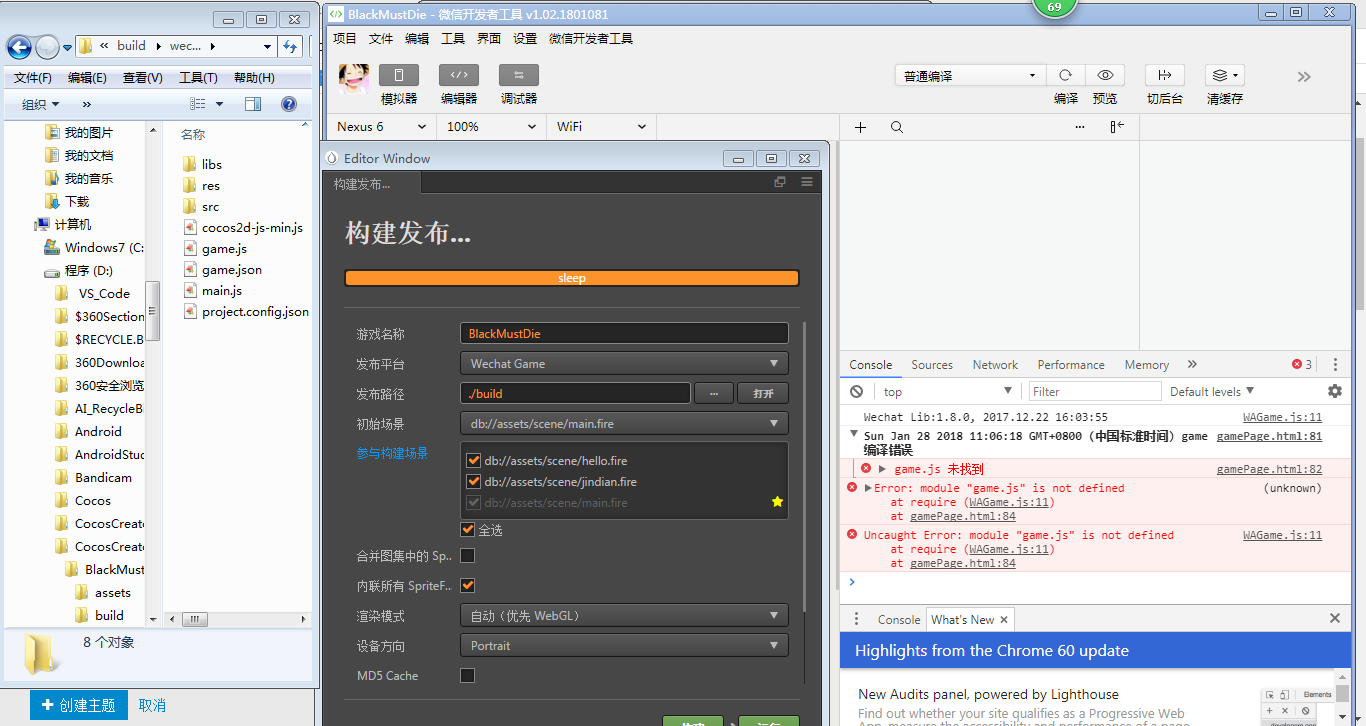 你是不是有 require(‘game.js’)?去掉 ‘.js’ 试试