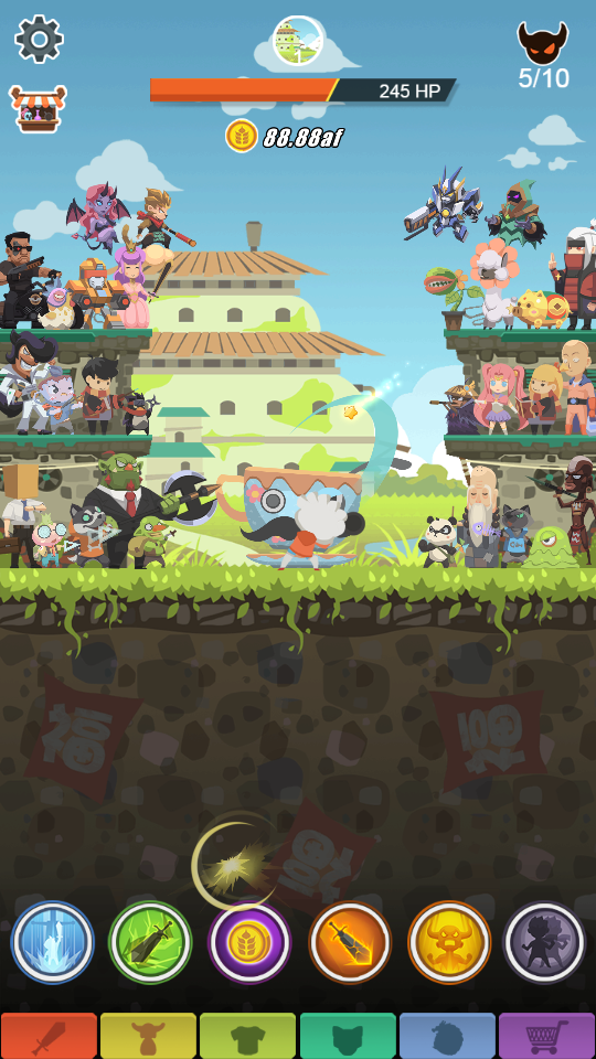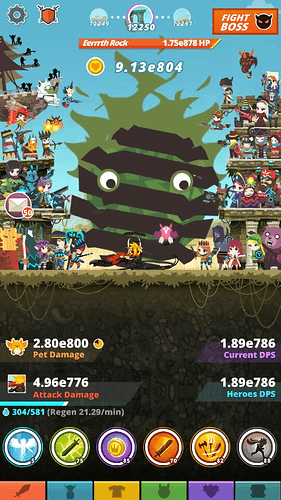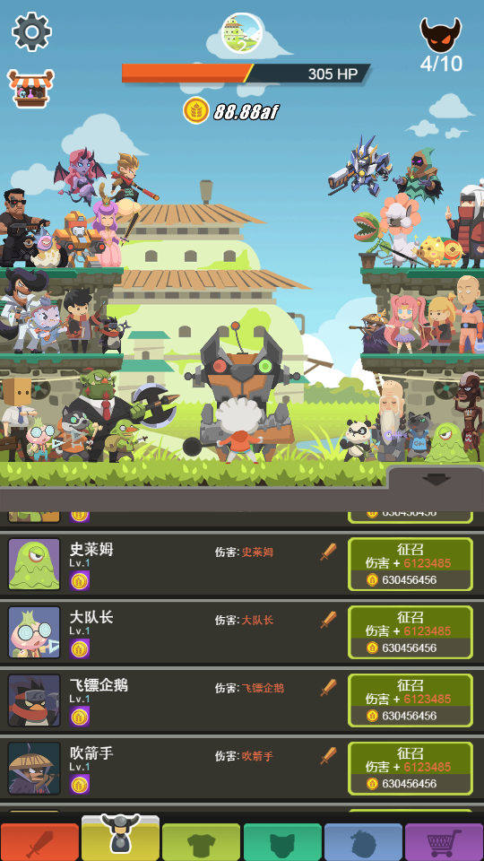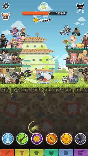 没错,我们的布局和玩法跟《点击泰坦2》基本相似,这两点上我们没有什么新的创意去想,他原来做的够好,我们能完整还原就不错了。或者你可以说是H5版的点击泰坦也不为过。