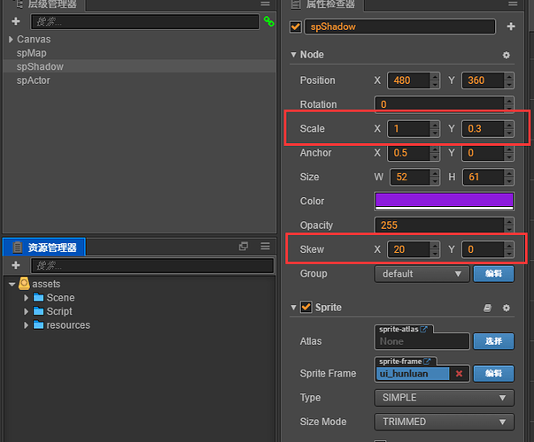 1.创建一张跟物体一模一样的sprite,比如shadow