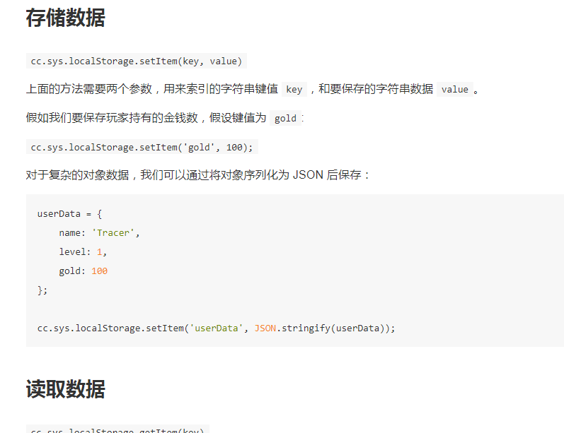 http://docs.cocos.com/creator/manual/zh/advanced-topics/data-storage.html?h=cc.sys.localstorage