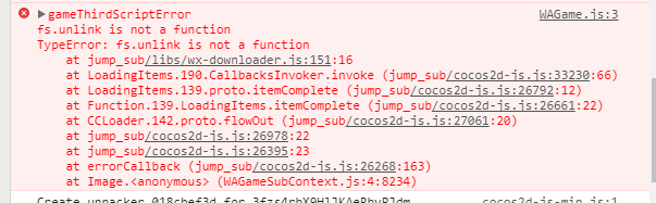 我看了打包出来的 wx-downloader.js, 子域里fs = {}, 也没有对fs.unlink 进行赋值,所以报错的