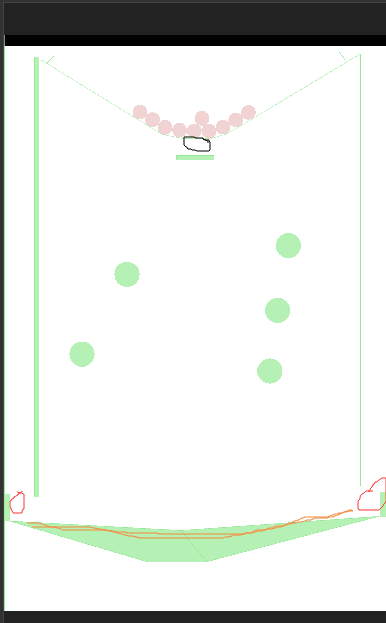 球有2种颜色(状态),碰到地面后是状态A,没碰到地面时是状态B。只有状态为B时才会从上方的口中发射,当所有球的状态都是状态A时,再将所有球的状态改变为B