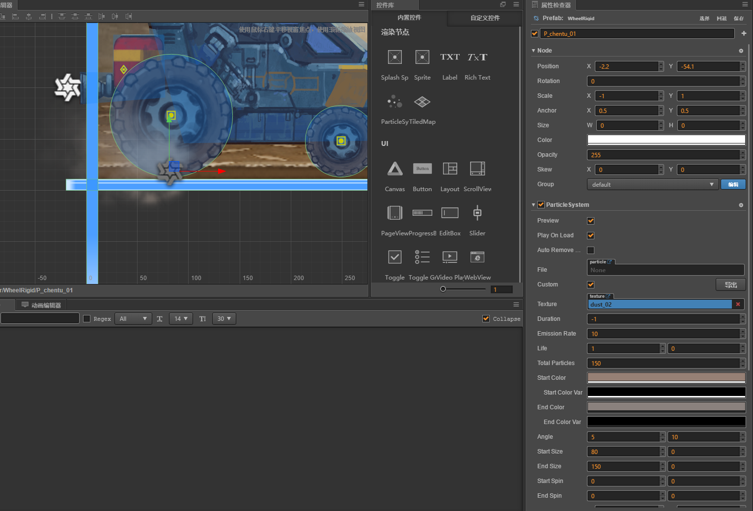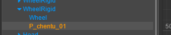 创建了一个粒子,名字为:P_chentu_01,它的父节点为WheelRigid,父节点的组件如图: