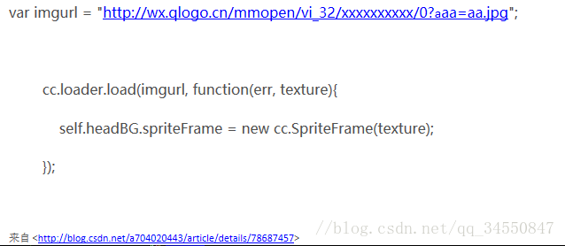 cc.loader.load({url: url, type: ‘png’}, function (err, texture) {