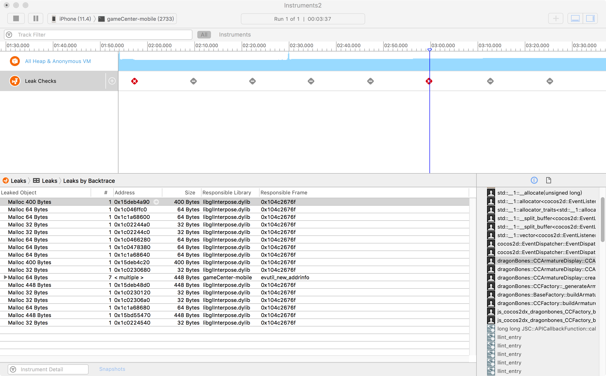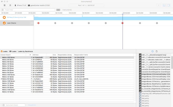 如图xcode检测到的,在热跟新的子游戏跟大厅场景跳转的出现的