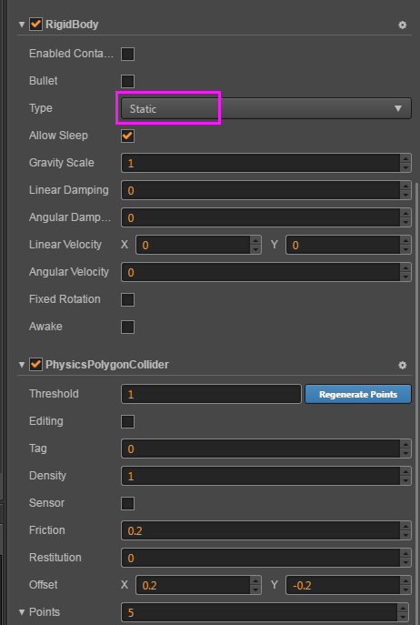 边界的是静态刚体 属性如下: