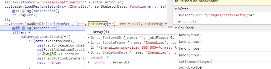 cc.loader.loadRes(‘ZhangLiao’, cc.SpriteAtlas, function(err, res));