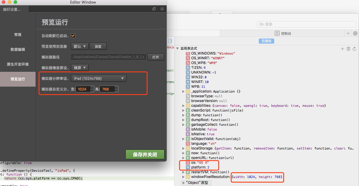 在CC偏好设置里面设置模拟器分辨率选的 iPad(1024*768)的,判断平台使用 cc.sys.platform 为什么设置为运行平台为Pad,这样可以模拟器上做适配,现在判断平台跟预期的不一样,只能导到手机上才能适配,感觉有点麻烦