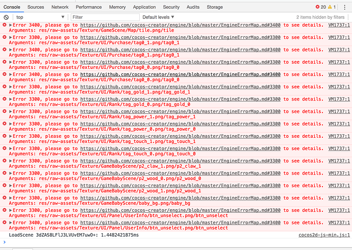 VM1737:1 Error 3300, please go to https://github.com/cocos-creator/engine/blob/master/EngineErrorMap.md#3300 to see details. Arguments: res/raw-assets/Texture/GameScene/bg.png/bg