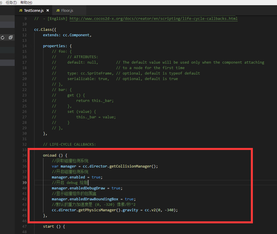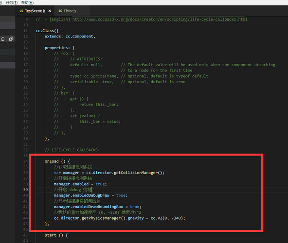 应该 用 cc.director.getPhysicsManager().enabled = true;