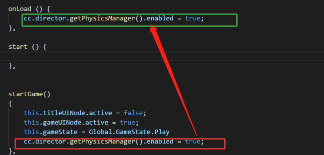 解决了,我把cc.director.getPhysicsManager().enabled = true;写到该scene里面节点的onLoad里面就可以,之前是在节点的某个按钮事件回调上设置,就不行。