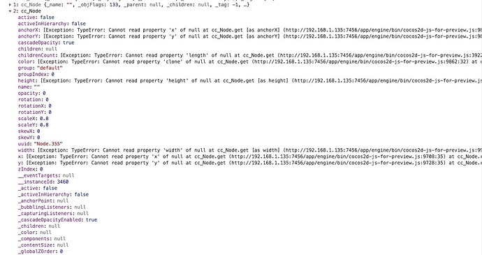 节点池输出出来,里面的节点是这样的。 这些节点是在定时器中用cc.instantiate来生成的,经过处理之后丢进节点池中。不光是节点池中,有时克隆出来的时候已经是这样了,请问是不是我哪里没用对?