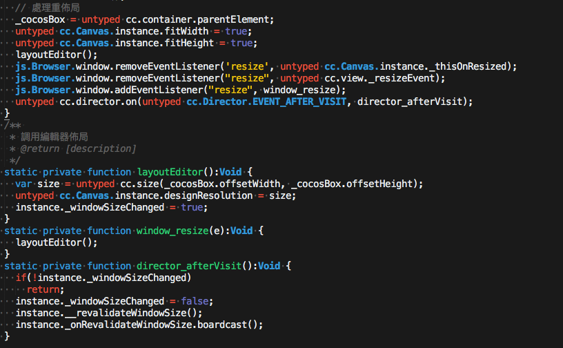 概括來說。先覆蓋掉cocoscreator引擎唯二的resize事件處理,禁用引擎的佈局處理
