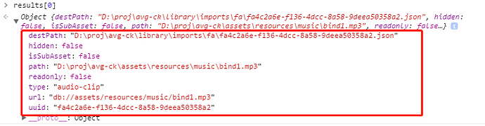 Editor.assetdb.queryAssets("db://assets/**\/*", 'audio-clip', function (error, results) {