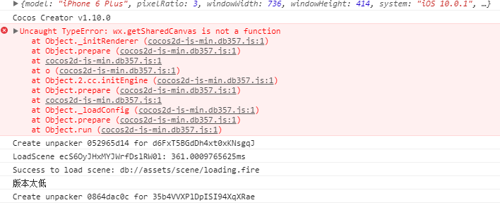 像这个错误样例: Uncaught TypeError: wx.getSharedCanvas is not a function
