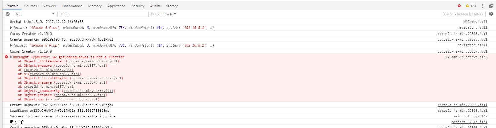 cocos 里可以直接通过 window.sharedCanvas 拿到 sharedCanvas,无论主域还是子域,所以是不是引擎在获取 sharedCanvas 的时候 没有保护呢?因为低版本微信 sdk 上确实会出这个错误。