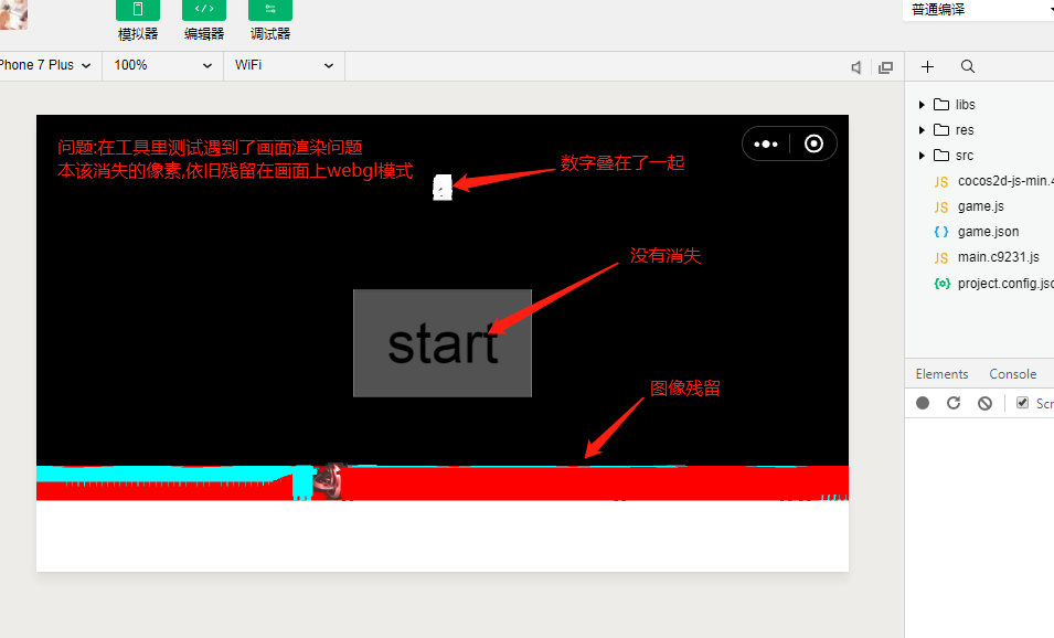 cocos本地web测试 正常 在微信开发工具里测试,出现残影画面未清除 的现象