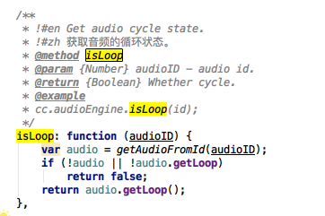 console.log(“音频的循环状态是:”,cc.audioEngine.isLoop(this.backAudioId)); //返回false