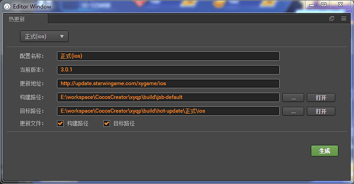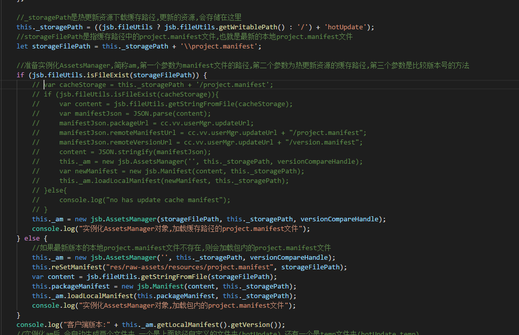 我的编辑器版本是1.8.2,使用的插件是是扩展商店内的“热更新manifest生成工具”,要求是要更新地址动态获取,也就是每次更新的地址都是不一样的,按照下面的代码只能第一次更新成功,按注释的代码走也是失败的。。。。求大大指教,到底哪不对。搞了好几天也没弄明白