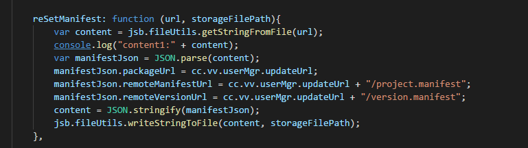 1.else情况不需要吧content写到storageFilePath里去,你把resources下的project获取到内容直接改完地址 JSON.stringify一下再loadLocalManfest一下就行了