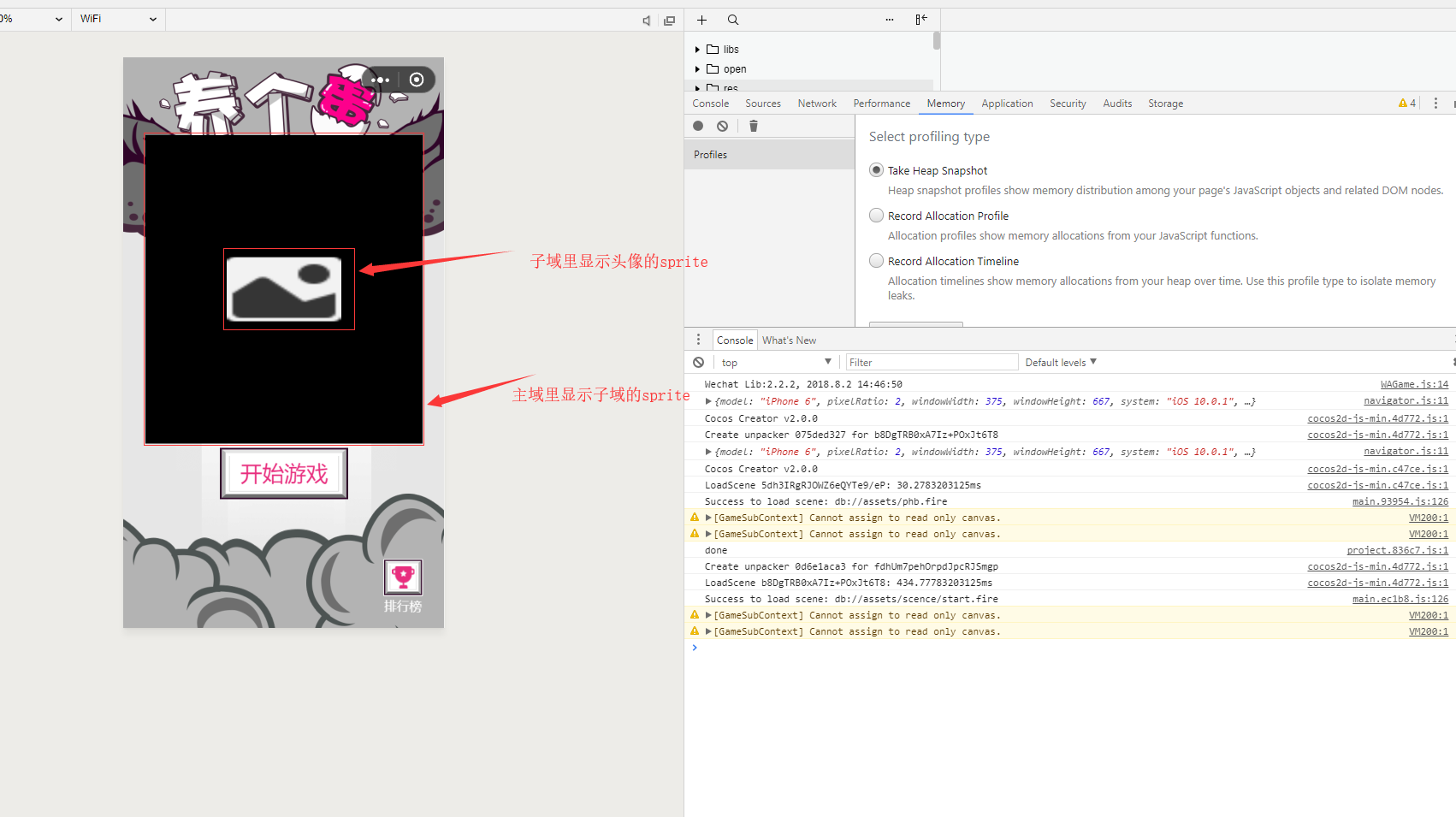 以上的步骤我在主域里也实验了,完全正常,放到子域里就会出现sprite一运行就消失的情况