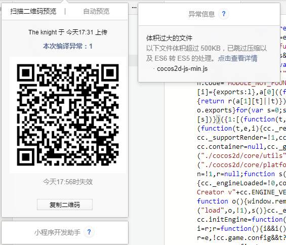 想预览发现编译异常这个是不是没有什么影响。就算场景里面什么也没有打包出来的这个文件也有1.4M怎么可能不超过500KB,这对游戏有什么影响吗? 还是说只是单纯的跳过了压缩和ES6转ES5的处理?