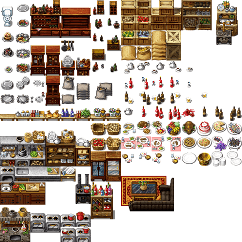 可以看到上面的瓶瓶罐罐,已经全部按实际像素收缩好了,可以说是一键完成(看到这里你可能会想,上面讲那么多才调好一个图块,这个瞬间就调好这么多,那还讲上面的干什么?对此,我只能回你: