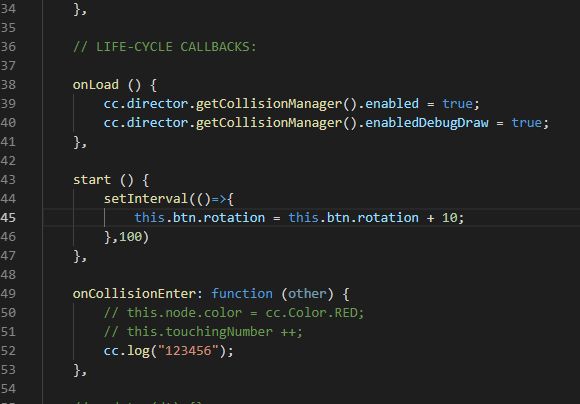 但是我还是想知道如果不在写一个脚本文件,而是直接在主文件里面写(我的主文件是绑定在的canvas上的)怎样才能触发碰撞回调呢?