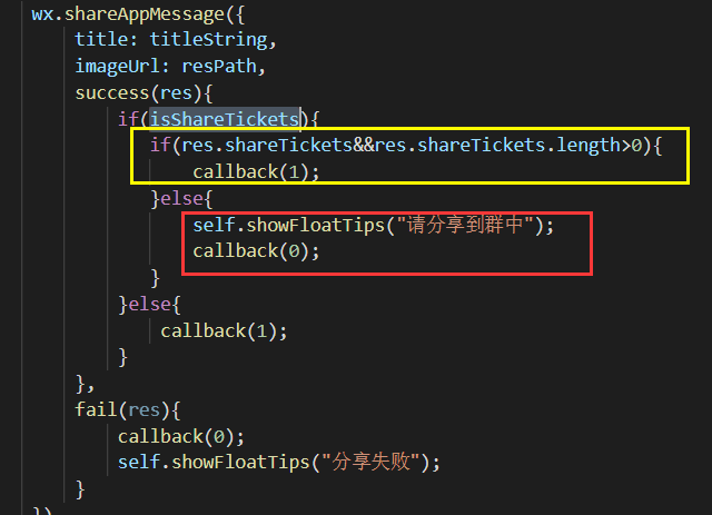 如图所示,每次查询群排行榜,第一次分享都会走到红框中,第二次分享才会走到黄框,这个是咋回事呢,是不是哪儿没写对