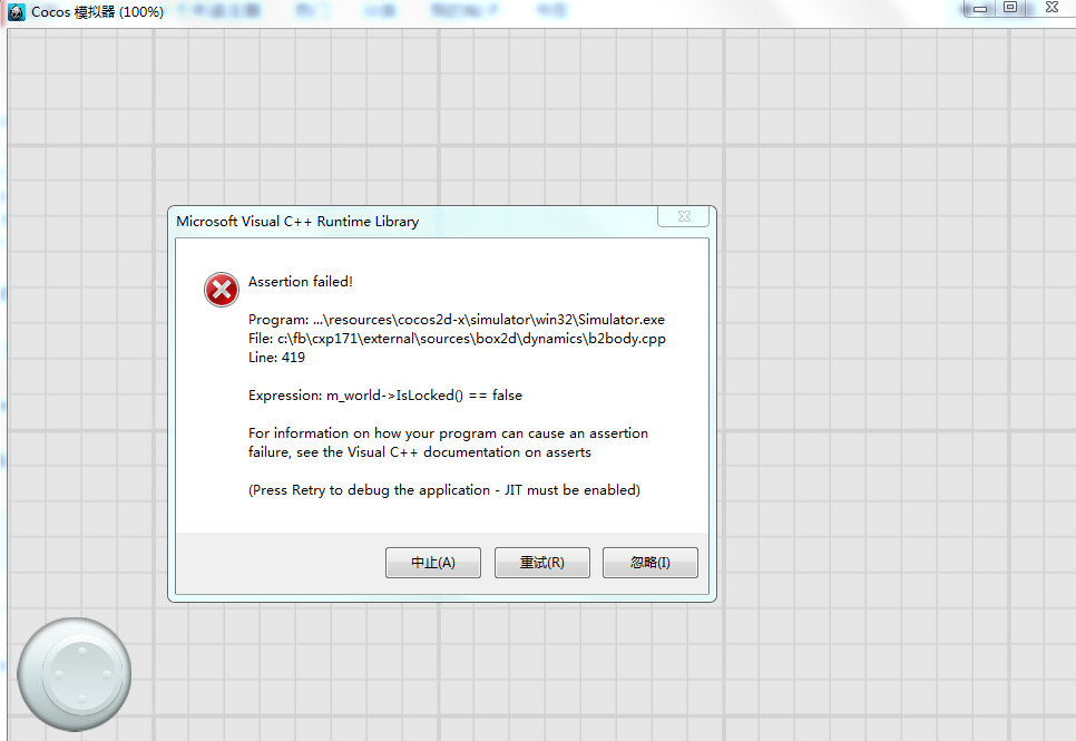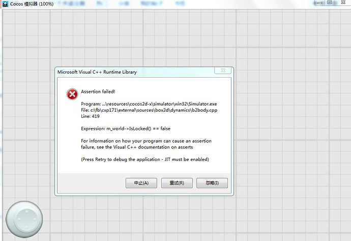 两个物理碰撞后就模拟器奔溃了,请问这个是什么问题