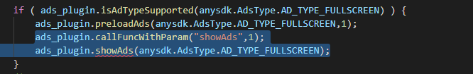 这日志是因为callFuncWithParam吧,showAds不是扩展接口。