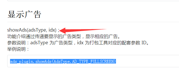 找不到showAds接口,也点不出来,如果调用?, aip文档也没有这个方法