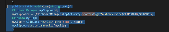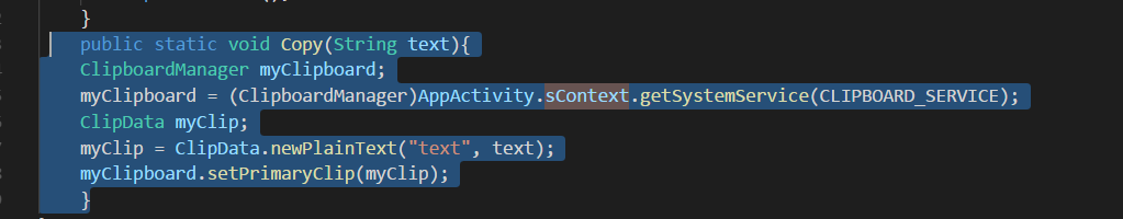 myClipboard = (ClipboardManager)AppActivity.sContext.getSystemService(CLIPBOARD_SERVICE);