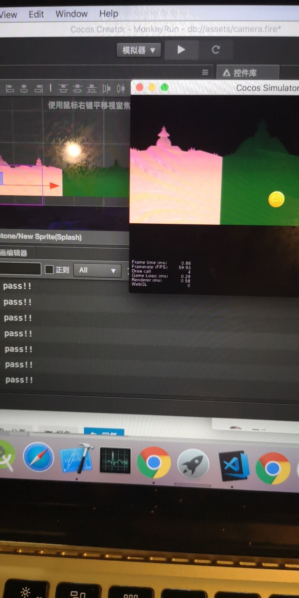 测试结果:那个粉红色的图片 过去一半,就说pass啦? 这个结果肯定不对。目前相机节点 是每帧 向右走5个像素。