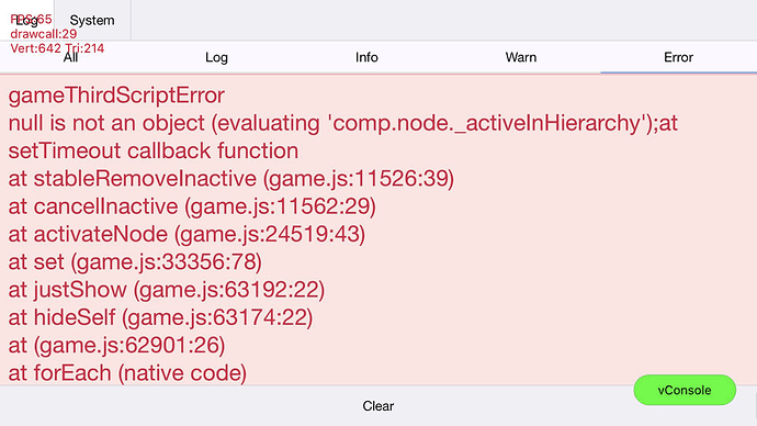 流程:锁屏5分钟左右,回到小游戏界面,点击切换场景,场景中有 显示节点代码。 如: