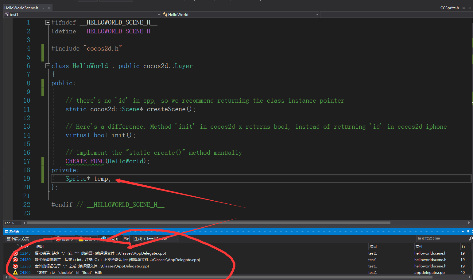 难道是cocos2dx里面不允许类里面有精灵?只能在cpp里面写?不能在头文件里面写?可是我看老师的视频都是可以的呀?是版本问题还是什么其他问题啊?