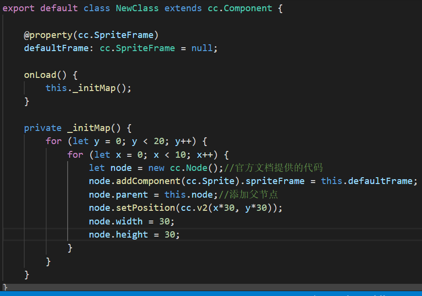 var sp = node.addComponent(cc.Sprite);//官方文档提供的代码
