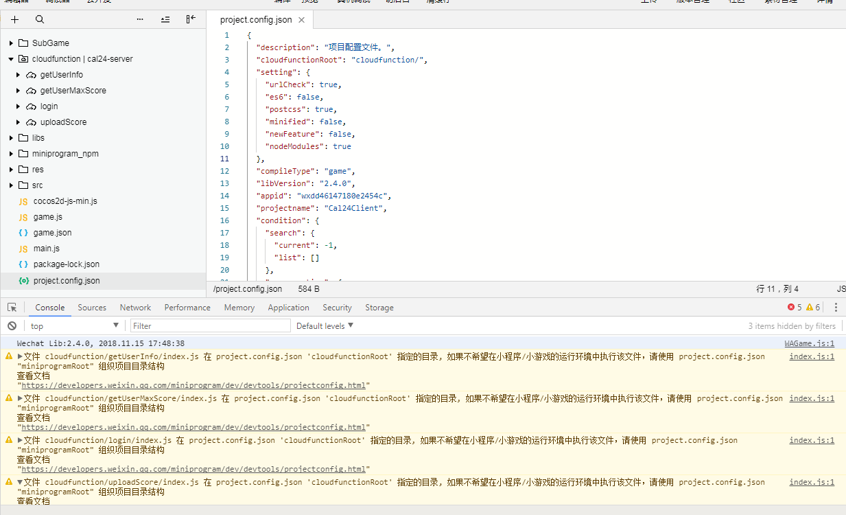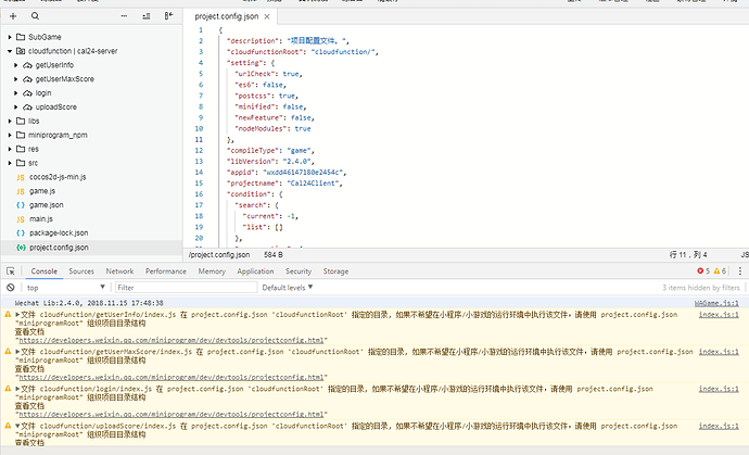 在网上查了一下,这个错误是由于cloudfunctions云开发目录与游戏主目录miniprogram不在同一级别所致。