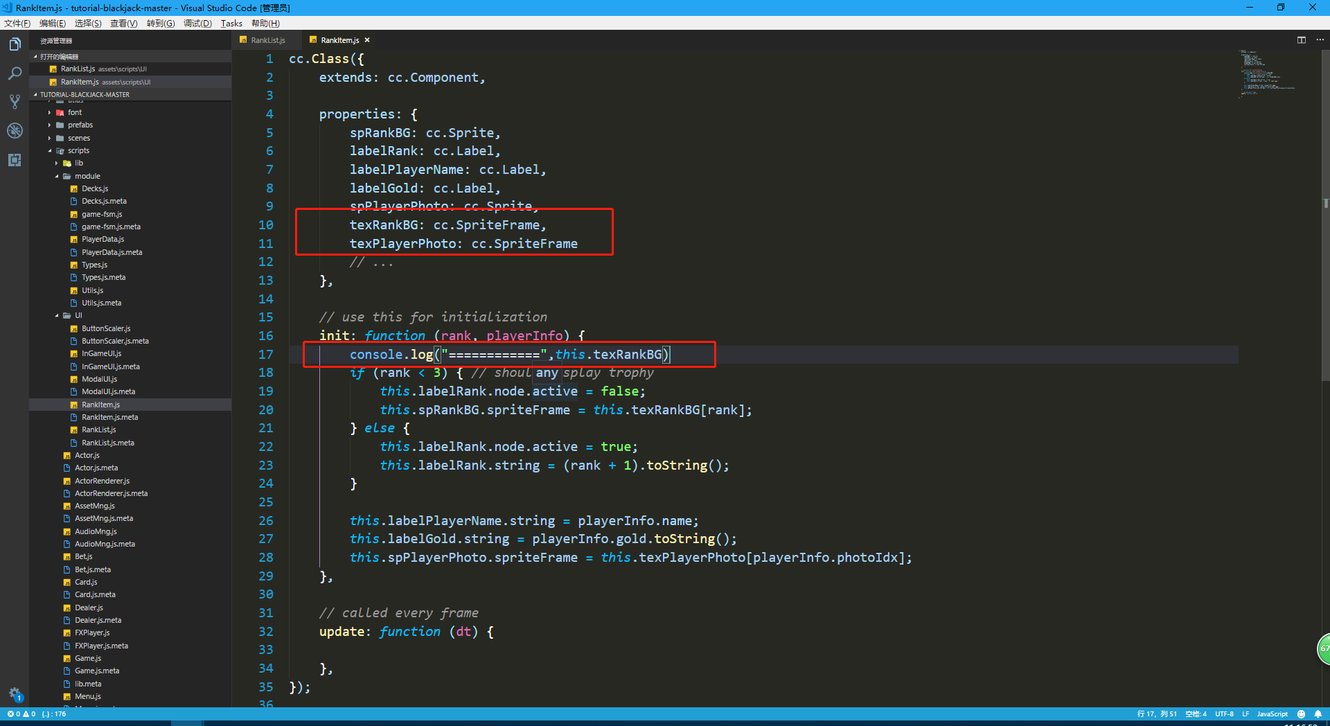 关于<腾讯合作开发的21点游戏> 中列表渲染问题
