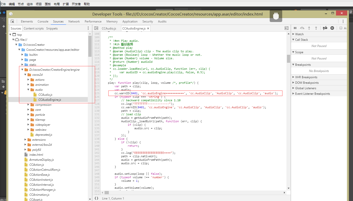 调用cc.audioEngine.play为什么没有打印上面的warn信息,是不是那个缺了哪个步骤,求大神解答