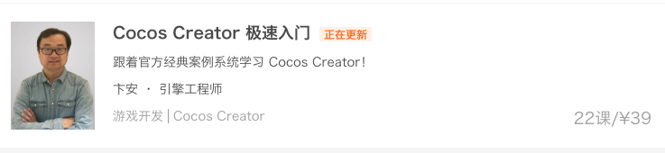 CSDN GitChat达人课《Cocos Creator极速入门》,以官方范例为主线也推荐给你