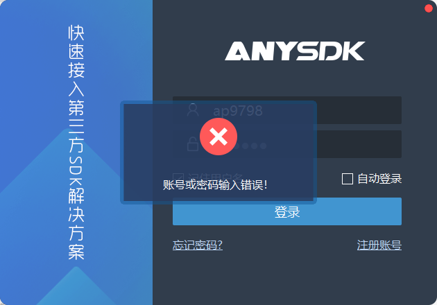 就是最新下载的ANYSDK 安装后完全无法登陆