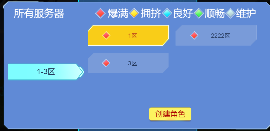 idx是所有的区服 let len: number = Math.ceil(idx / 10) 10区一个预制体列表(如1-10区,11-20区) let ele: number = idx % 10 这个是余数 (如21-25区) 区服列表我做好了 就是显示服务器