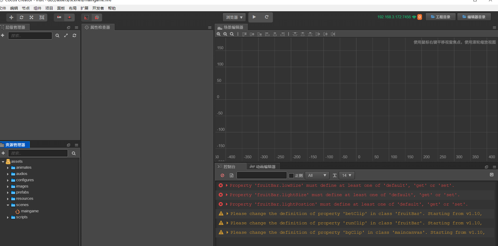 看样子只能重做一遍了,好在脚本,动画,资源都没有丢失,只是场景内的node全清空了。