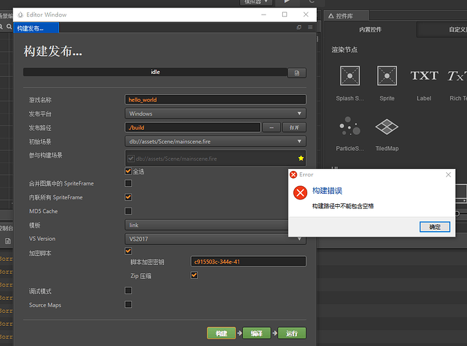 另外,我的上层目录也是有空格,但是没法改呀,如果改了的话,后面cocos 里的文件就打不开了……难道……只能重做了?(救命